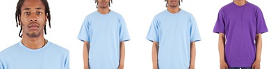 7.5 oz., 100% USA cotton, 16 singles; Heather Grey is 90% USA cotton/10% polyester; Charcoal Grey is 50% USA cotton/50% polyester; 2% lycra neck rib; Shoulder-to-shoulder neck tape and double-needle stitched neck; 1" double-needle stitched sleeve and bottome hems; 1" stretch-proof neck collar with satin/woven label; Heavy-duty knitting; Forward-thrusted shoulder seam for comfortable neck fit; Oversized/Relaxed with slight drop shoulder streetwear fit; Quarter-turned to eliminate center crease;
