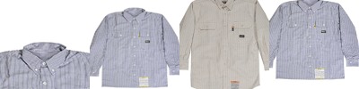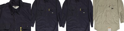 7 oz., 100% flame resistant twill; Meets the requirements of ASTM F1506, NFPA 70E, NFPA2112, and OSHA 1910.269; Button-down collar; Button front; Pockets with flaps and button closures; Pencil slot on left pocket; Triple needle stitched main seams; Adjustable button cuffs;