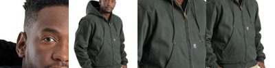 10 oz., heavy-duty cotton duck; Heavyweight quilt-lined taffeta liner; Water-repellent finish; Triple-needle stitched main seam; Heavy-duty brass zipper; Three-piece insulated hood with drawstring; Pleated action back; Pleated elbows; Two front patch pockets; Three inside pockets; Manufactured in a LEED (Leadership in Energy and Environmental Design) certified factory;