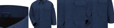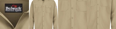7 oz., 88% cotton, 12% nylon flame resistant twill; Meets the requirements of ASTM F1506, NFPA 70E, NFPA2112, and OSHA 1910.269; Button front; Pockets with flaps and button closures; Pencil slot on left pocket; Triple-needle stitched main seams; Adjustable button cuffs;