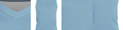 - Self-material main body set-in mitered V-neck with bar tack reinforcement