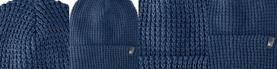 100% acrylic, waffle-knit texture; Slouched construction, can fold over; Custom woven logo label; Measures 7" w x 11.8" h;