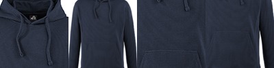 8.25 oz., 55/44 cotton/polyester knit ottoman fleece; Horizontal stripe texture throughout fabric; Jersey-lined hood with sewn eyelets and matching drawcords; Twill tape back of neck tape, set-on pouch pocket; Air-spun fleece side gussets with no sideseam; 2x2 rib cuffs and waistband; Double-needle stitched throughout; Tear away label;