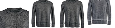 7 oz., 55% cotton, 45% polyester burnout fleece; Acid-washed with silicone finish; 2x1 rib collar, v-notch, cuffs and waist; Flatlock stitching throughout; Raglan sleeves;
