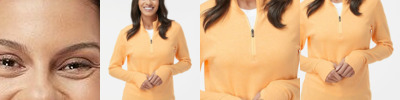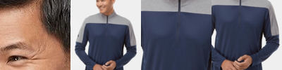 - Quarter-zip pullover style with zipper garage