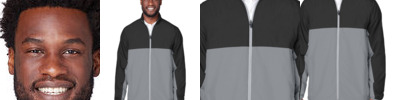 - Ribbed collar, cuffs, and bottom band