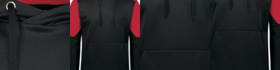 - Three-panel hood with drawcord