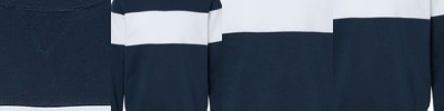 - Rib collar, v-notch, cuffs and waistband