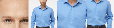 - Two-piece, topstitched, lay-flat collar