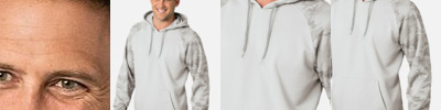 - Two-ply jersey hood with single-needle edge stitching on neck