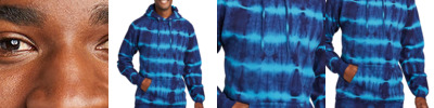 A pattern of dark, inky single-color hues mixed with color-on-color tones makes this fleece hoodie a true tie-dye standout.