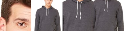 7.25 oz. 60% cotton, 40% polyester melange fleece; Scuba neckline; Contrast fabric on hood, shoulders, and arms; Front pouch pocket; Rib waist & cuffs;
