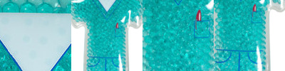 - Reusable nurse shaped hot/cold aqua bead gel therapy pack for temporary relief of sore muscles