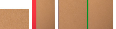 - White stitch binding with a color block accent
