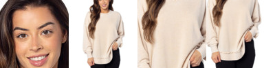- Crew neck with dropped shoulders and relaxed hi-lo curved bottom hemline