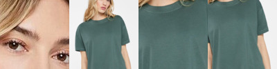 - Coverstitched sleeves, side seams, and bottom hem