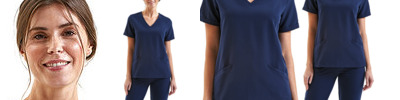 V-neck style with two front pockets