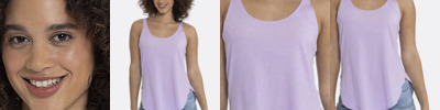 - Heather colorblock on upper chest, back and shoulders