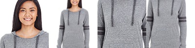 50% polyester, 37% cotton, 13% rayon; Sleeves feature two contrast stripes; Thick drawcord on hood; Rib-knit cuffs; Contoured bottom hem; No drawcord on XS;