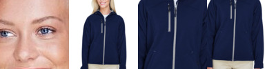 9 oz./yd² (US), 15 oz./L yd (CA), 3-Layer, 96/4 polyester/ spandex Bonded to 100% polyester fleece with inner membrane Poly fill in body: 2.9 oz/yd², polyester taffeta lining Poly fill in hood and sleeves:4 oz/yd², polyester taffeta lining 8,000 mm waterproof rating 800 g breathability rating EZAWAY SYSTEM™ featuring zip-off thermal hood; inside storm placket with fleece chin guard Right-chest zippered pocket Adjustable fleece-lined cuffs Shock-cord at hood and drop back hem EZEM SYSTEM™ embroidery access